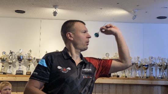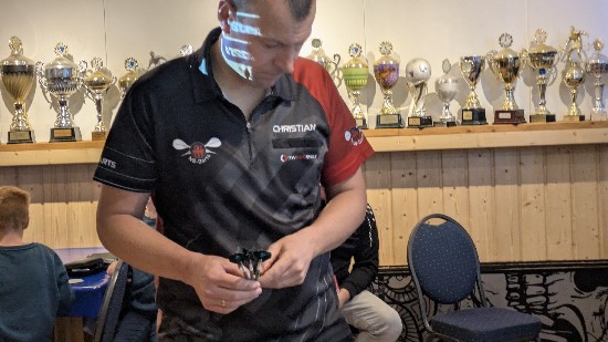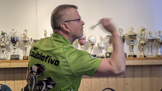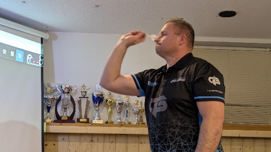 Christoffer Lorenz setzte in der Vorrunde im Spiel gegen Peter Kühne ein absolutes Highlight, er checkte den “Big Fish”, 170 Punkte, mehr Finish geht nicht, selbst bei den Profis sieht man dies nicht alle Tage.