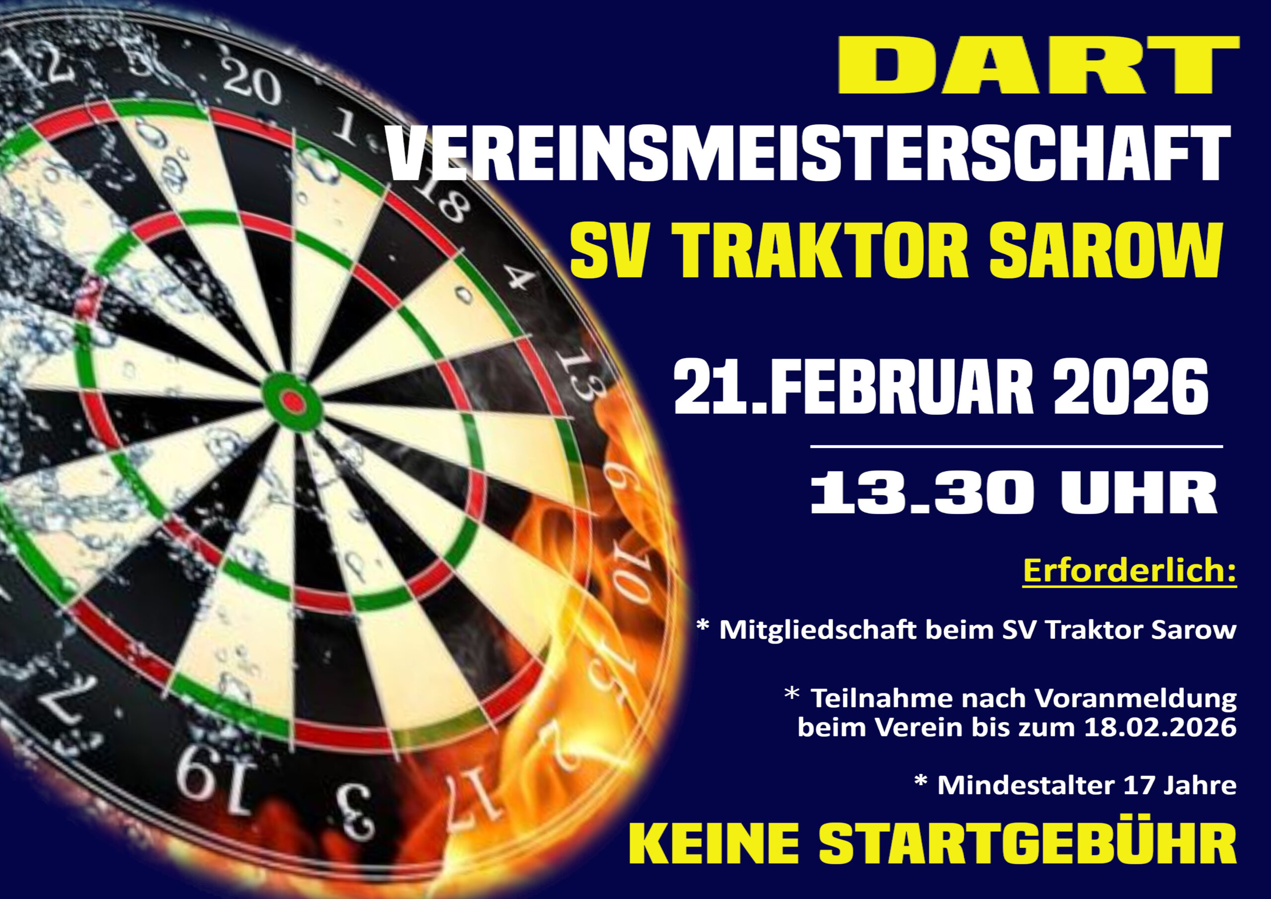 TRAKTOR sucht seinen Dartmeister! Die Boards und die Oche´s sind bereit, Wanderpokal und Siegerpokale sind poliert – kann also losgehen mit der Vereinsmeisterschaft. Wer noch mitspielen möchte,