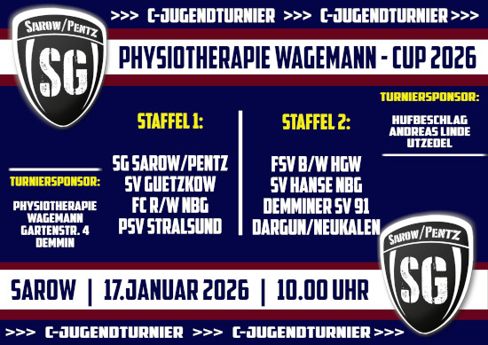 Nach ihrer Vizemeisterschaft auf Kreisebene und der daraus erspielten Teilnahme an der Vorrunde zur Landesmeisterschaft möchte unsere C-Jugend nun auch beim eigenen Hallenturnier eine gute Platzierung holen. Jedoch hat sich beim Physiotherapie Wagemann am Sonnabend (10.00 Uhr) namentlich gute Konkurrenz angesagt.