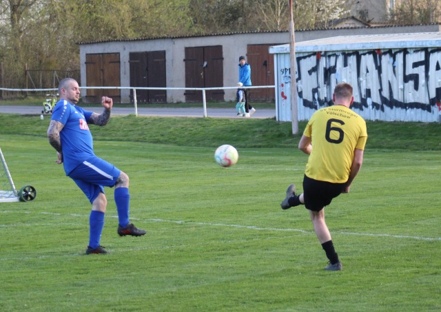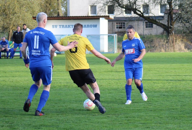 …. gewonnen haben unsere Oldies ihren Saisonauftakt gegen Sturmvogel Völschow, am Ende stand es 10:2. Die ersten zwanzig Minuten verlief das Spiel noch relativ ausgeglichen, mit einigen guten Chancen auf beiden Seiten. So hätten die Völschower vor dem Führungstreffer der SG von Marco Linde (17.), der insgesamt fünfmal traf, durchaus selbst die Führung machen können.
